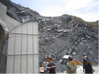 礦山采用平硐開拓,礦井、中段、工作面均具有兩個(gè)或兩個(gè)以上安全出口。井巷分叉口注明其所在地點(diǎn)或通往地面出口方向,礦山中段及安全出口布置情況均符合設(shè)計(jì)要求。礦山選用的開拓方式和采礦方法、開采順序符合設(shè)計(jì)要求,采礦工藝適應(yīng)礦巖的賦存條件符合設(shè)計(jì)要求。能執(zhí)行“敲幫問頂”制度,頂板管理方法可行。天井設(shè)有護(hù)欄,并配有照明設(shè)施,防墜措施符合規(guī)定要求。井巷斷面能滿足行人、運(yùn)輸、通風(fēng)和安全設(shè)施、設(shè)備的安裝、維修及施工需要。井巷支護(hù)形式及支護(hù)質(zhì)量符合設(shè)計(jì)要求。目前未發(fā)現(xiàn)地面陷落區(qū)。礦山能按井巷維修管理制度要求進(jìn)行維修和管理,井巷掘進(jìn)符合設(shè)計(jì)要求。